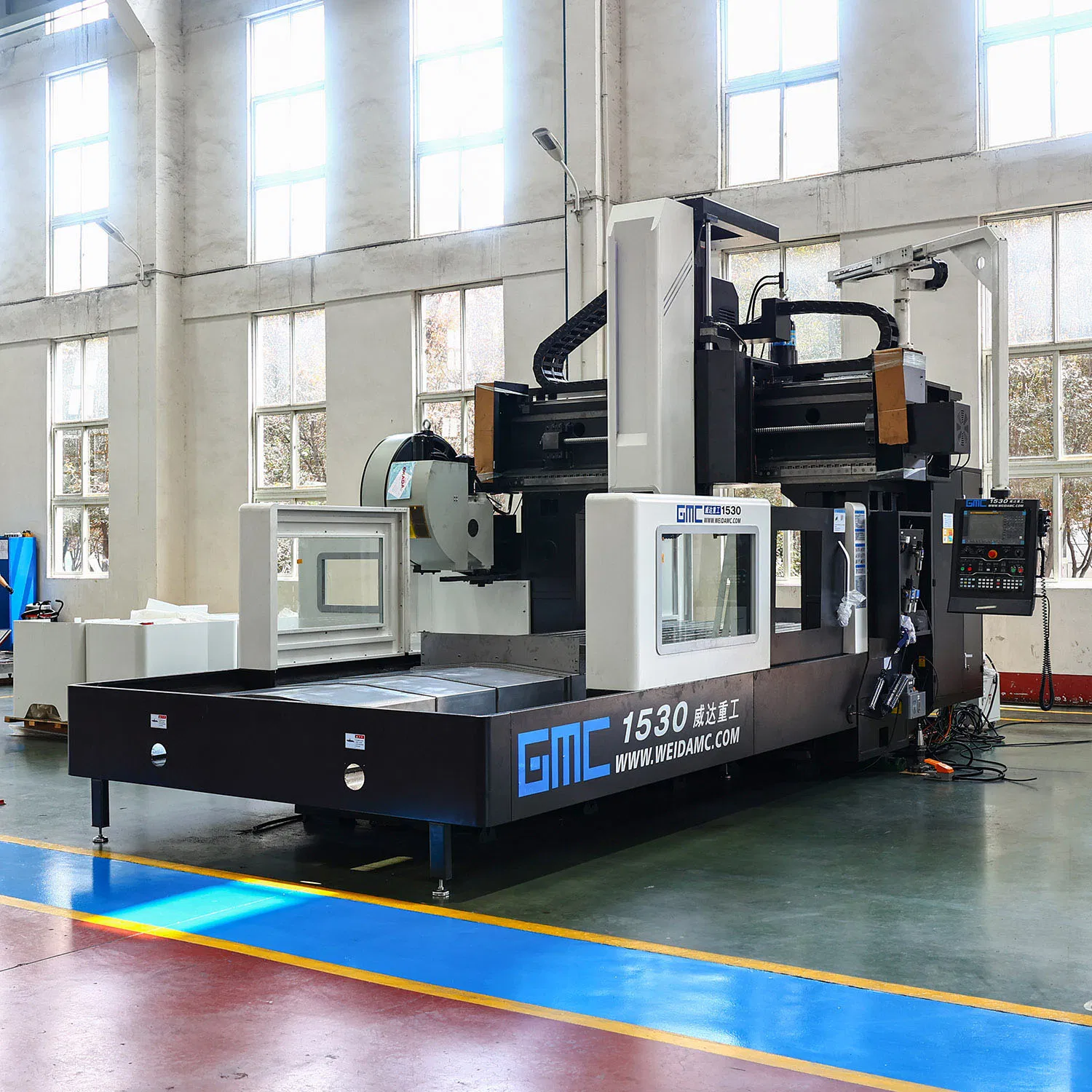 Product OverviewCNC Gantry-type Heavy Cutting Machining CenterFEATURES AT A GLANCE EXCELLENT RIGIDNESS HIGH PRECISION HIGH PRCISION FEEDING SPEED HEAVY CUTTINGControlling System PRODUCT SPECIFICATIONSSpecificationsUnitsGMC1530Worktable......