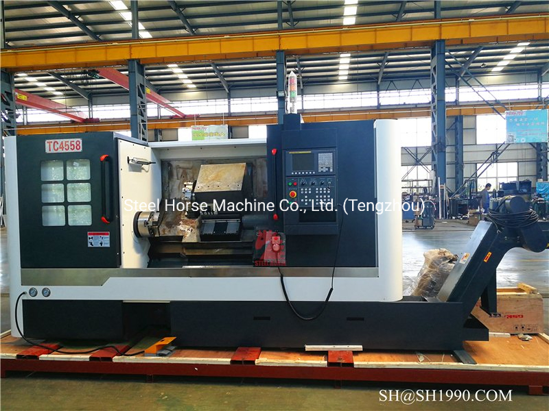 Tc4558 CNC Lathe MachineThe main performance characteristics:TC4540,TC4545,TC4550,TC4558,TC4563 are horizontal CNC lathe with two axes (X-axis, Z-axis) continuous servo control and 45 degree inclined bed. It is based on "steel horse" 30 years experience for CNC Lathe machine!!!!!!The CNC s......