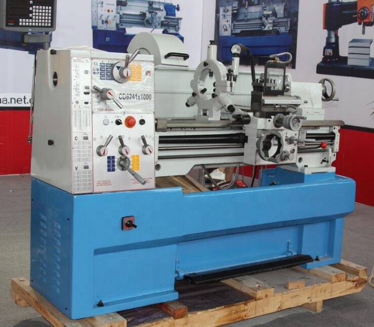 Engine Lathe CD6241 Feature SpecificationsCD6241Swing over bed410mmSwing over cross slide255mmSwing over gap580mmCenter height205mmDistance between centers1000/1500mmWidth of bed250mmMax. section of tool20mmx20mmCross slide travel210mmCompound rest travel140mmSpindle bore52mmSpindle noseD1-6Taper of......